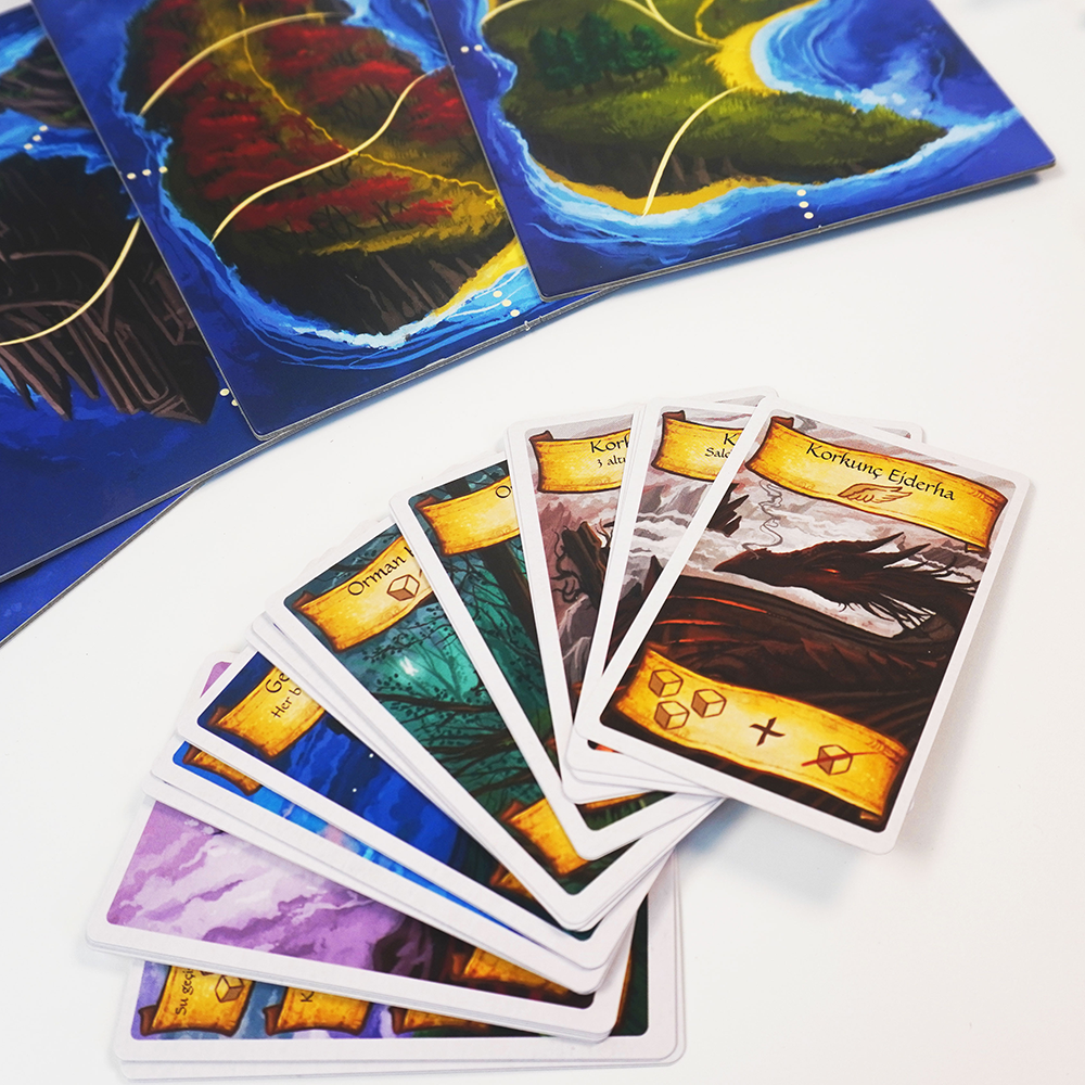 Başlangıçta oyuna tüm kartları katın, ada sayısını bir adet azaltın, 4 rengin herbirine ait bir lider var, bu liderleri başlangıçta kapalı olarak yerleştirin ve seçim yapıp öyle oyuna başlayın. Tüm ek yuvarlak token ları kapalı olarak haritaya yerleştirin, ne olduğu bilinmeden üzerine geldikçe açılsın. Böylelikle oyun süresini biraz uzatıyoruz ve oyun bize kartlar bitene kadar makul bir strateji savaşı sunuyor. Oyunun biz Türkler için bence en güzel tarafı kartların fantastik çevirisi. KKK ya ayrıca teşekkürler.