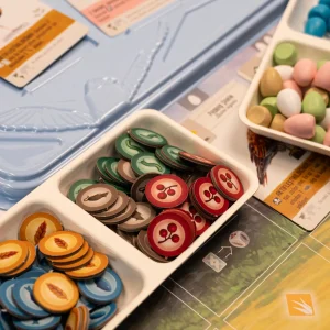 Dün itibariyle kargom elime ulaştı, henüz oynama fırsatı bulamadım ama ilk gözlemim, malzemelerden adeta kalite fışkırıyor. yemlik kapları, kuş yuvası maketi (zarlık), kuş yumurtaları hatta kural kitapçığının kağıt kalitesi bile diğer tüm oyunların component kalitesinden fersah fersah ötede.